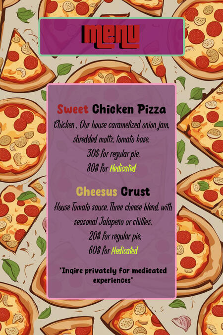 Inquire about our medicated pizzas and sauces